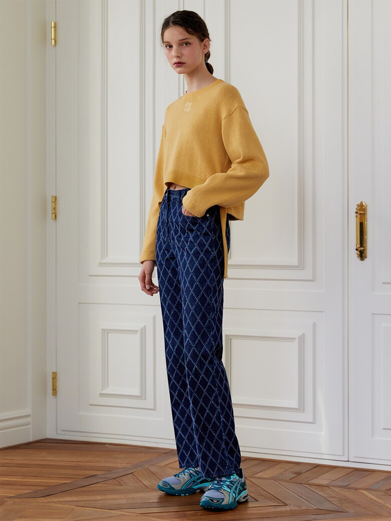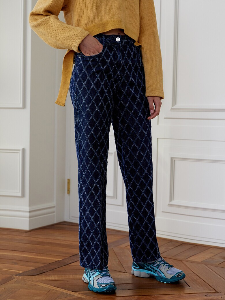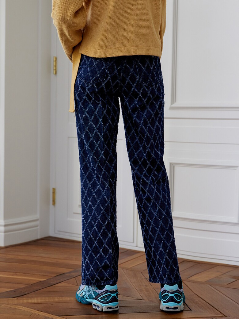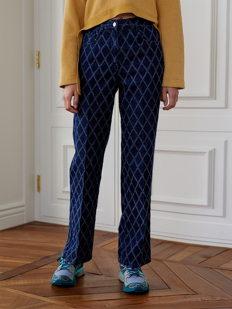 - 데님에 다이아몬드 패턴으로 펀칭을 뚫고