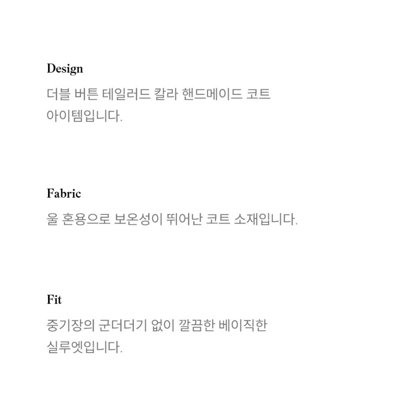 | 1. 제품 소재 (섬유의 조성 또는 혼용률을 백분율로 표시, 기능성인 경우 성적서 또는 허가서) | 상품상세참조 |