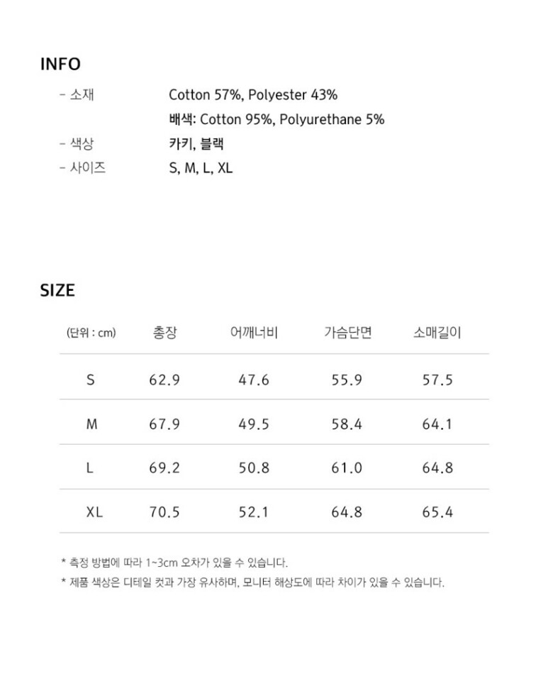 * 마네킹 모양에 따라 좌,우 기장&라인이 틀려 보일 수 있습니다 *