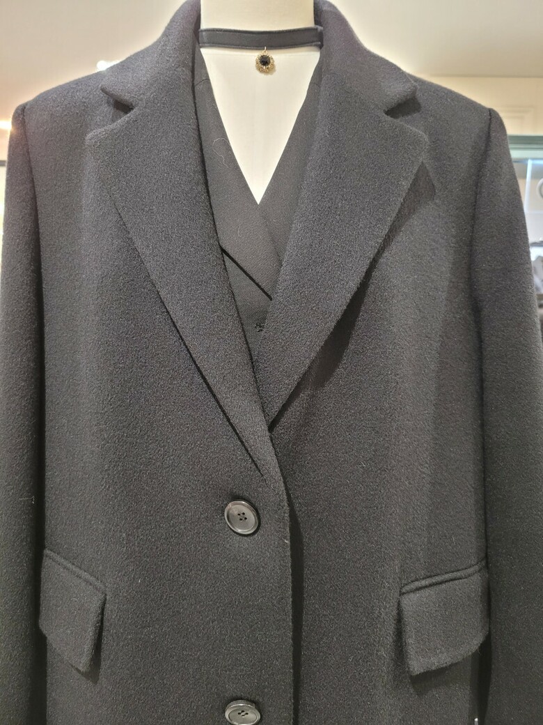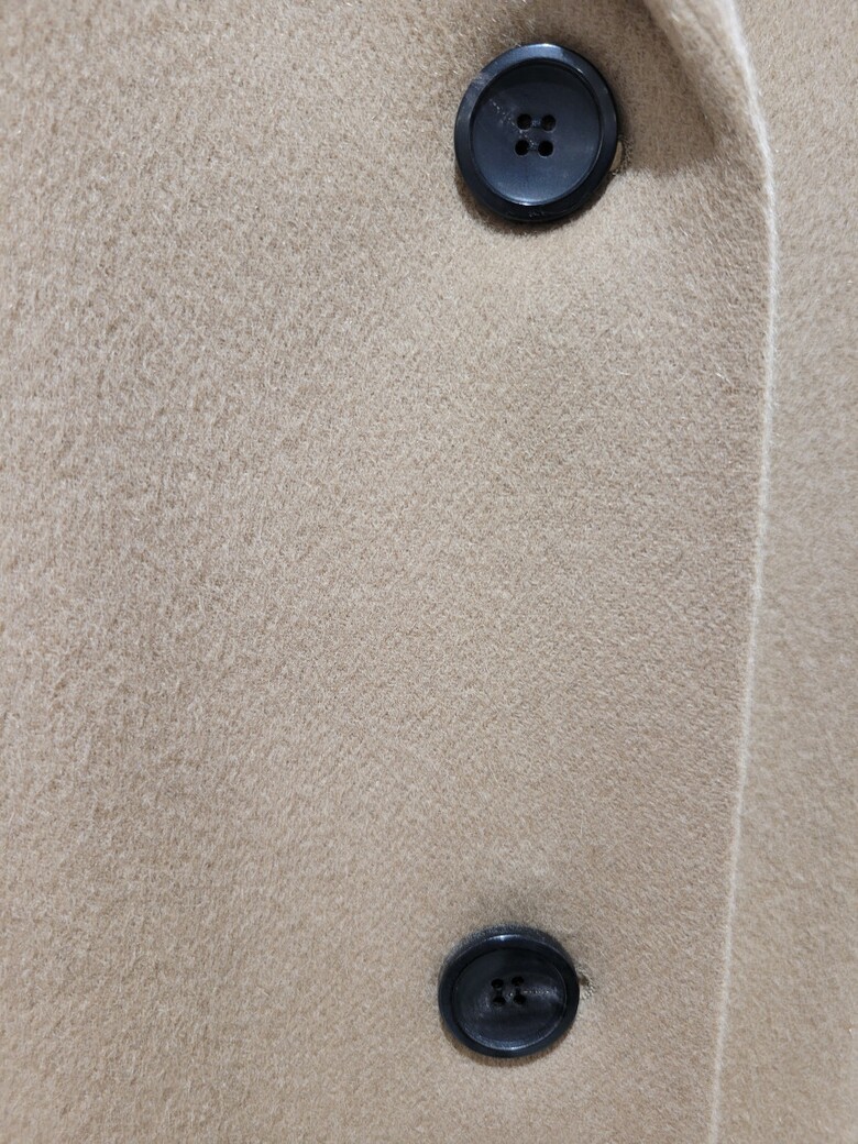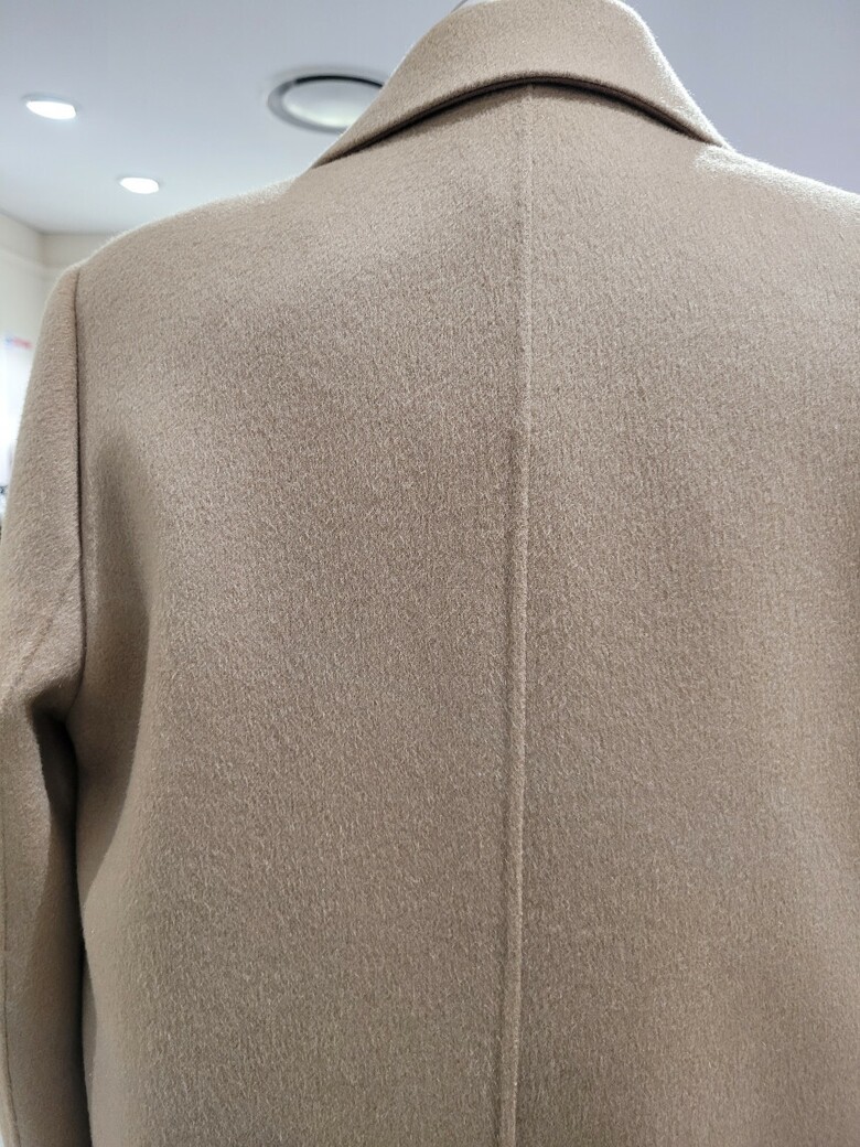 | 1. 제품 소재 (섬유의 조성 또는 혼용률을 백분율로 표시, 기능성인 경우 성적서 또는 허가서) | 겉감:모 51%, 캐시미어 49% / 안감:폴리에스테르 100% / 배색:모 65% |