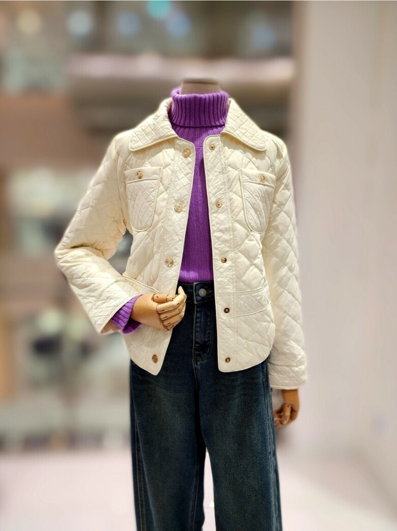 [발렌시아]금장버튼 카라넥 퀼팅 덕다운 패딩 24AGE80