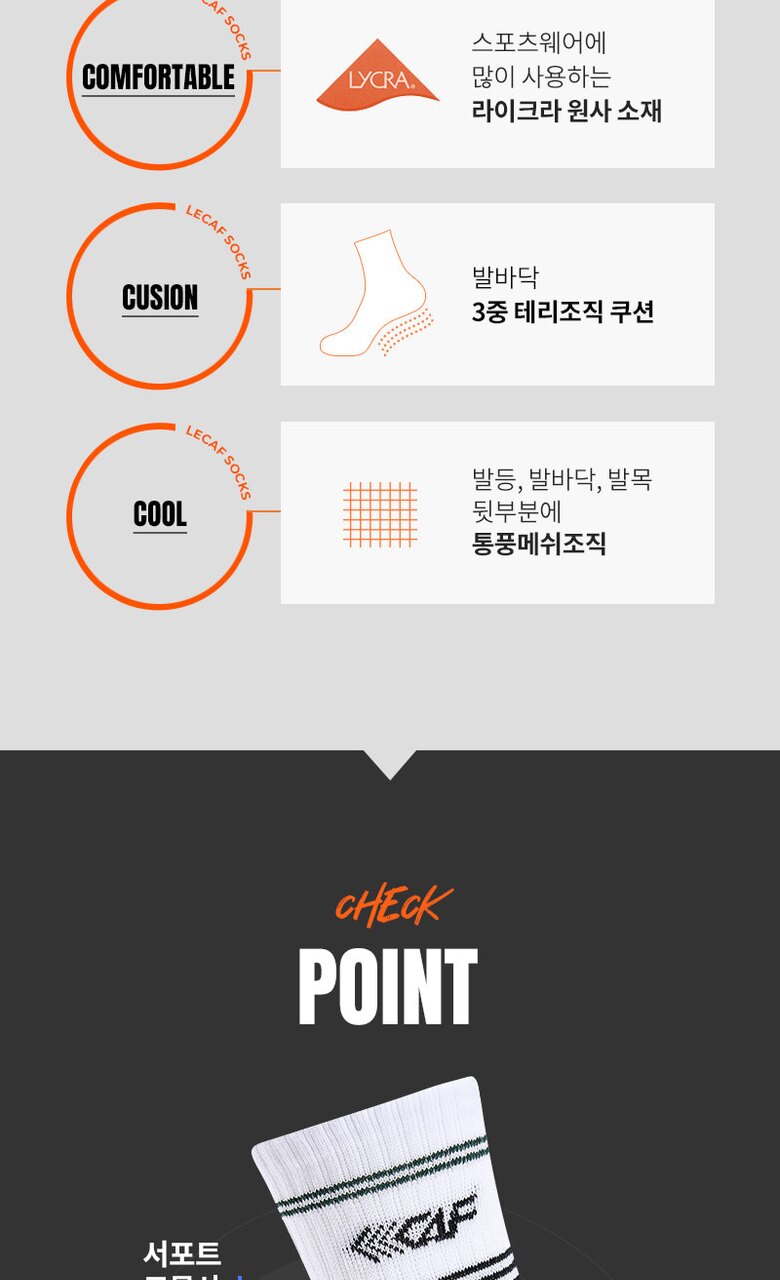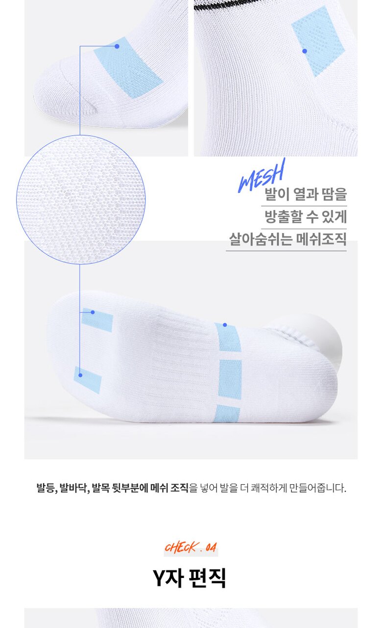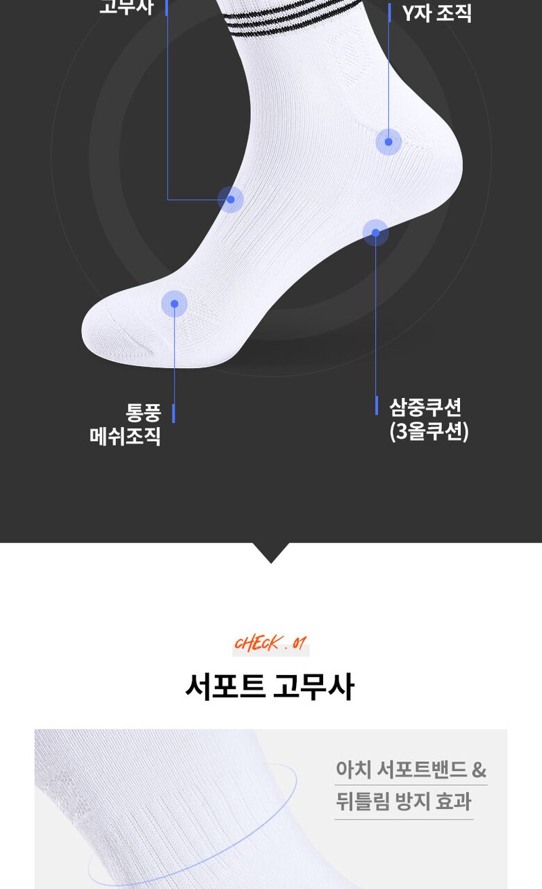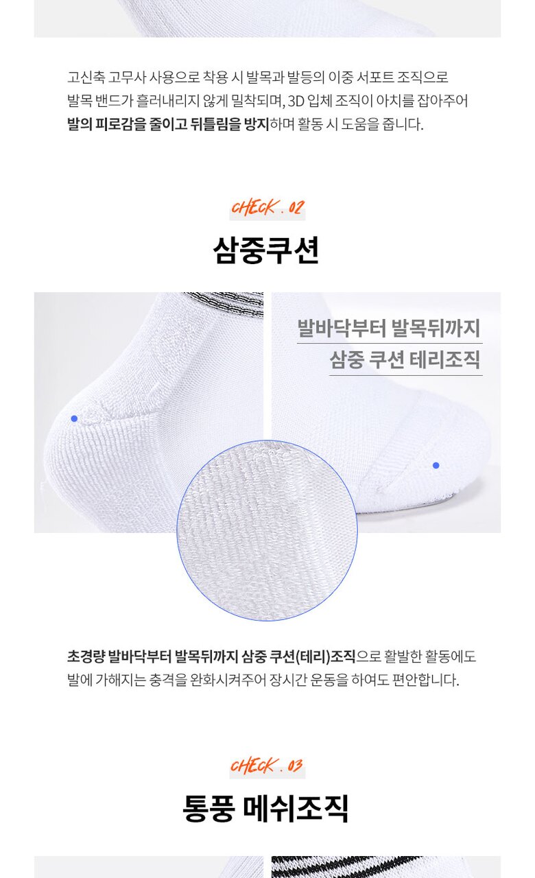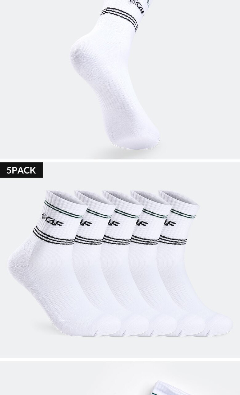 르까프 남성 스포츠쿠션 배색링글 컴포트핏 중목양말 5P_WH/GR