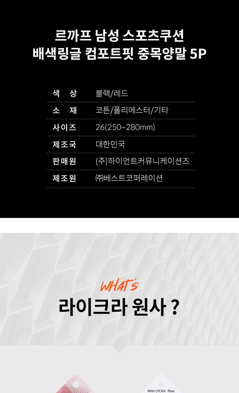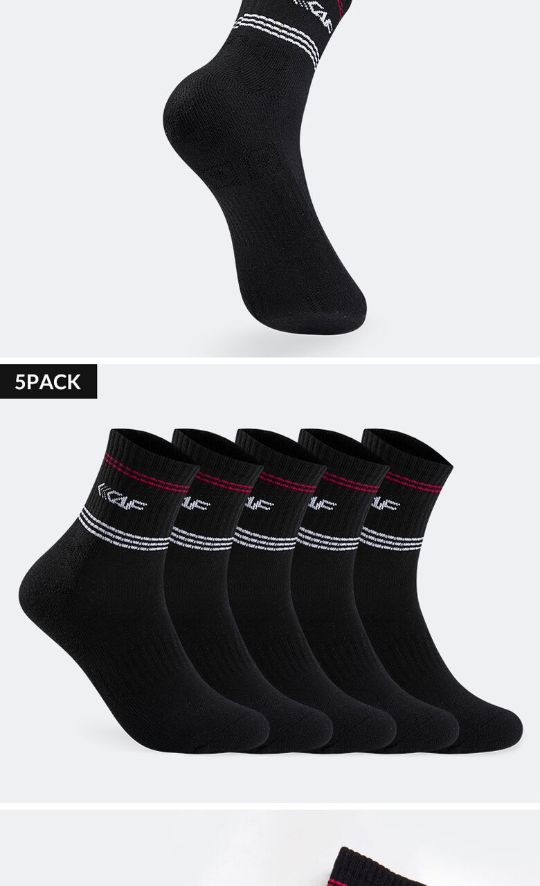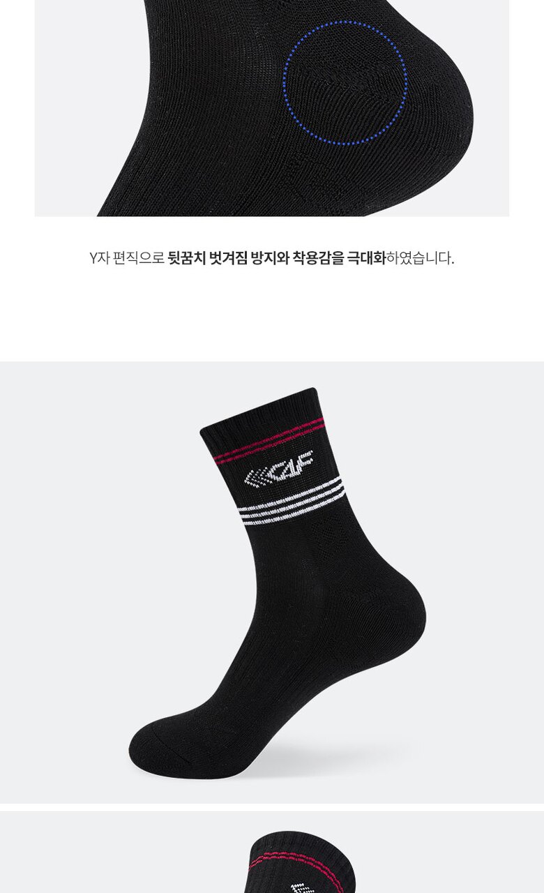 르까프 남성 스포츠쿠션 배색링글 컴포트핏 중목양말 5P_BK/RD