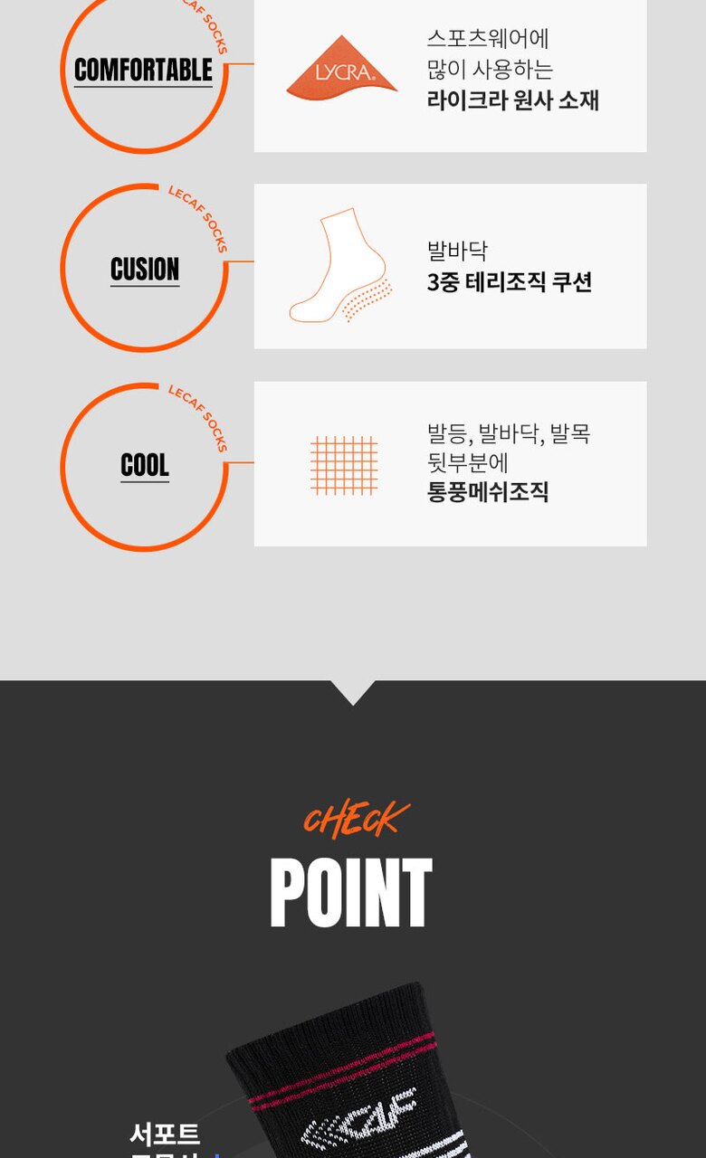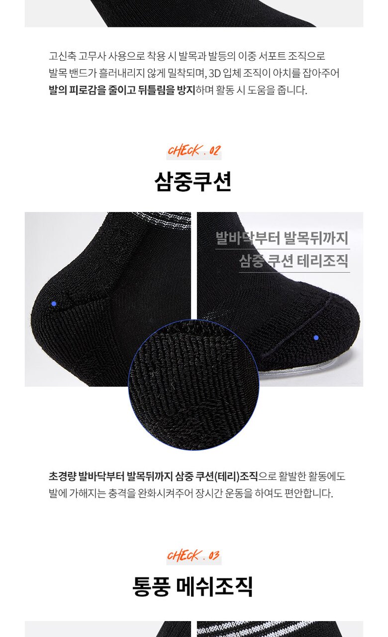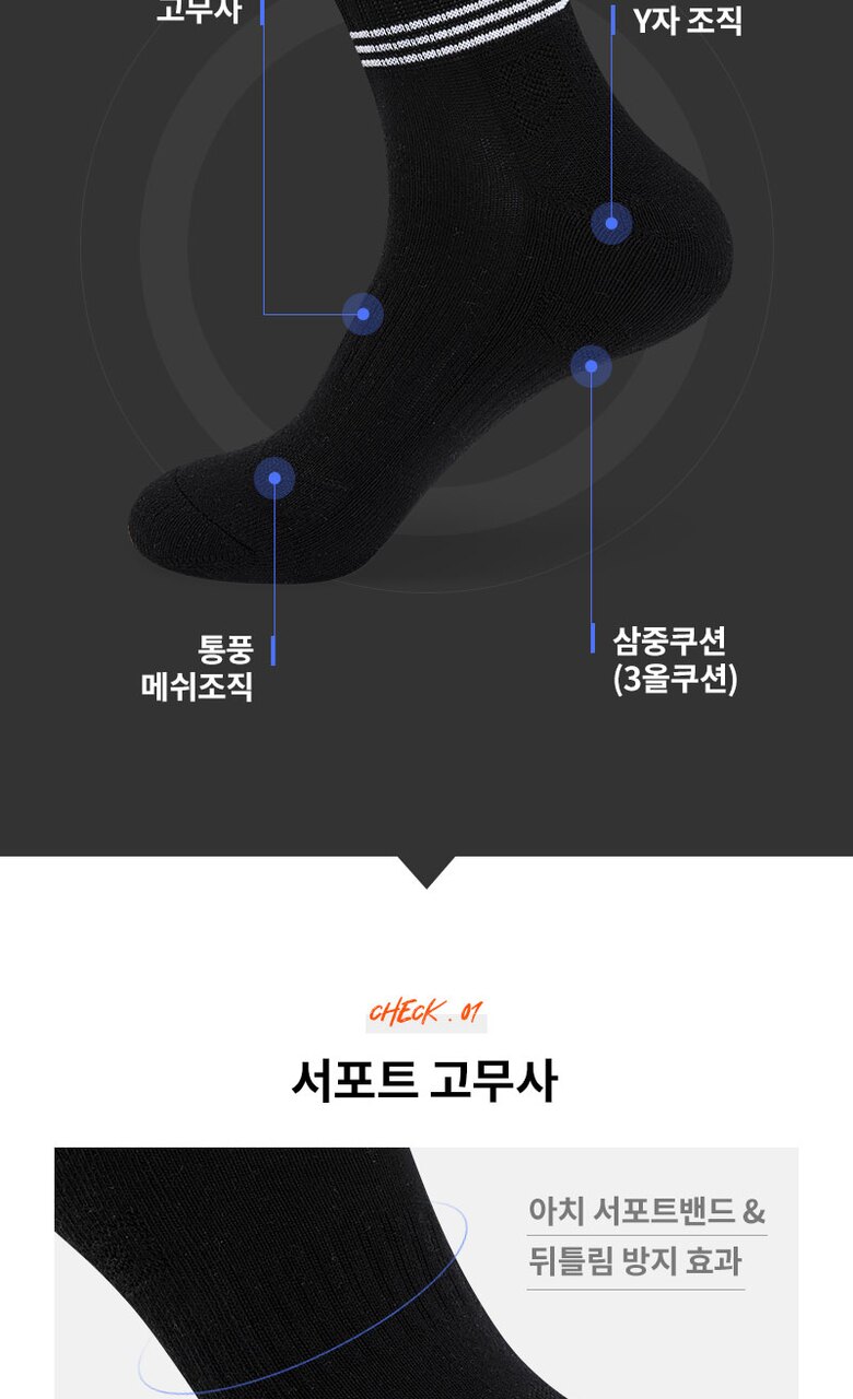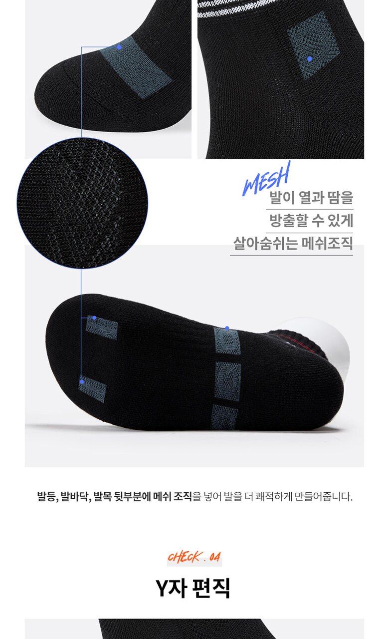 르까프 남성 스포츠쿠션 배색링글 컴포트핏 중목양말 5P_BK/RD