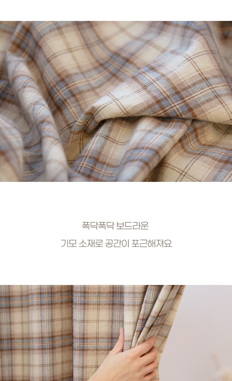 와플 기모체크 창문 현관 거실 커튼 5size