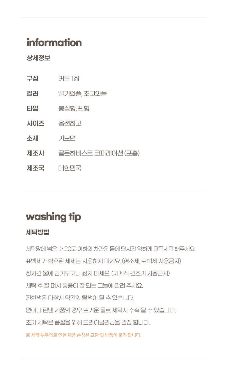7. 세탁방법 및 취급시 주의사항 | 상세페이지 참조 |