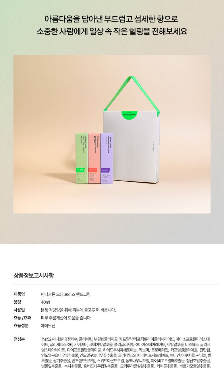 텐더가든 모닝브리즈 핸드크림 40ml 3종 택1