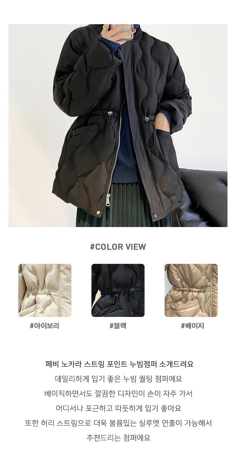 [~77까지]페비 노카라 스트링 포인트 누빔패딩점퍼