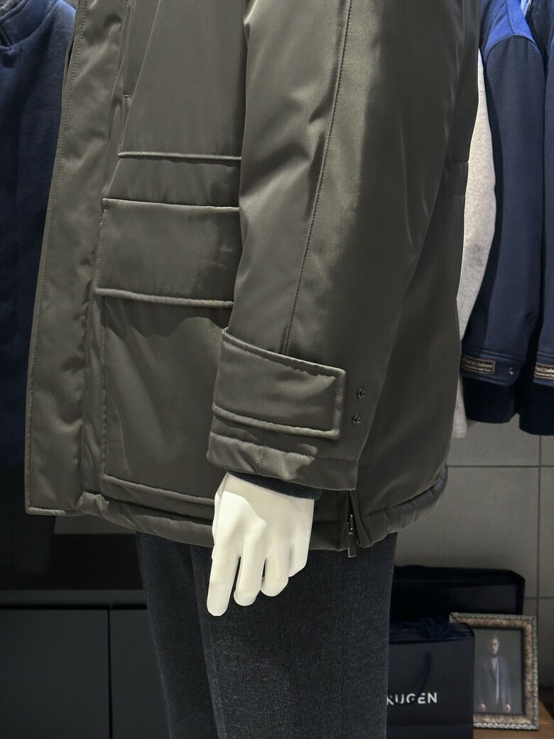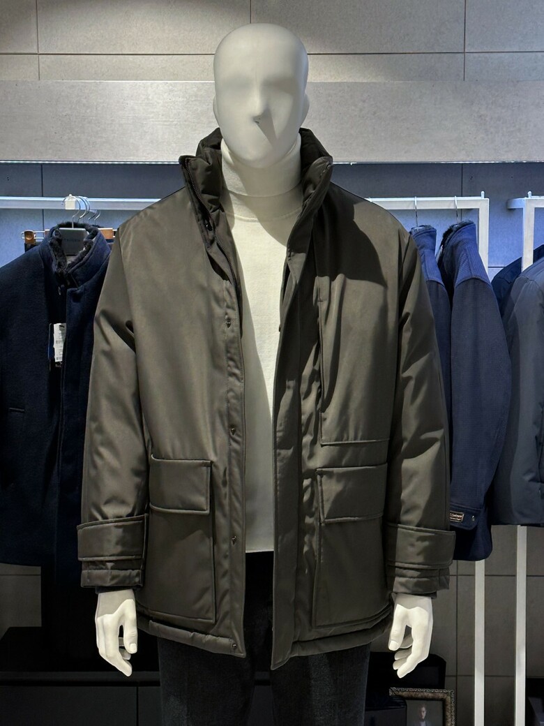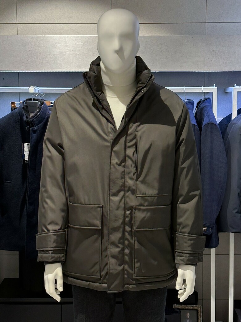 트루젠 (구스다운/한정판매) 코코아그레이 하프기장 쉘파카 디테일 남자 점퍼 1244IH002023-1