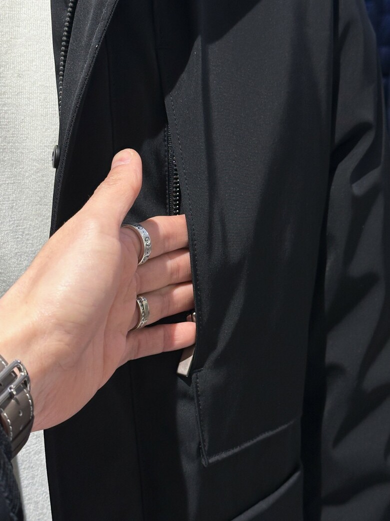 -캐쥬얼로 활용하여도 좋고 정장자켓을 가리는 기장감으로 정장 위에 착용하여도 좋습니다