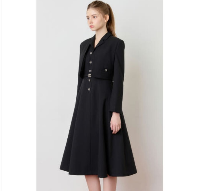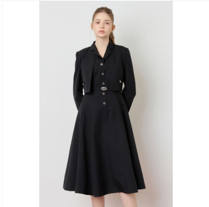 [케네스레이디] 오픈카라 자켓 레이어드 벨티드 원피스 EWOPOK0800