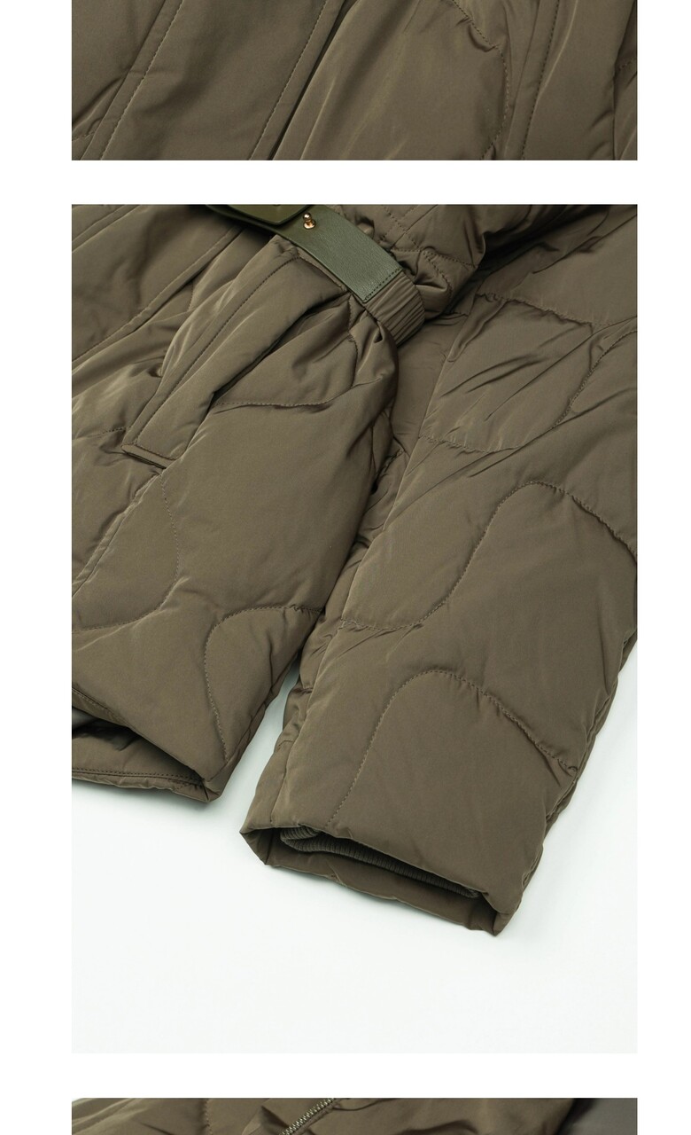 오리털 충전재로 보온성이 뛰어나며|*| 양쪽에 포켓과 허리벨트로 실용성을 높였습니다.