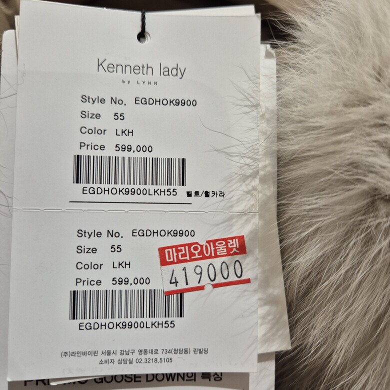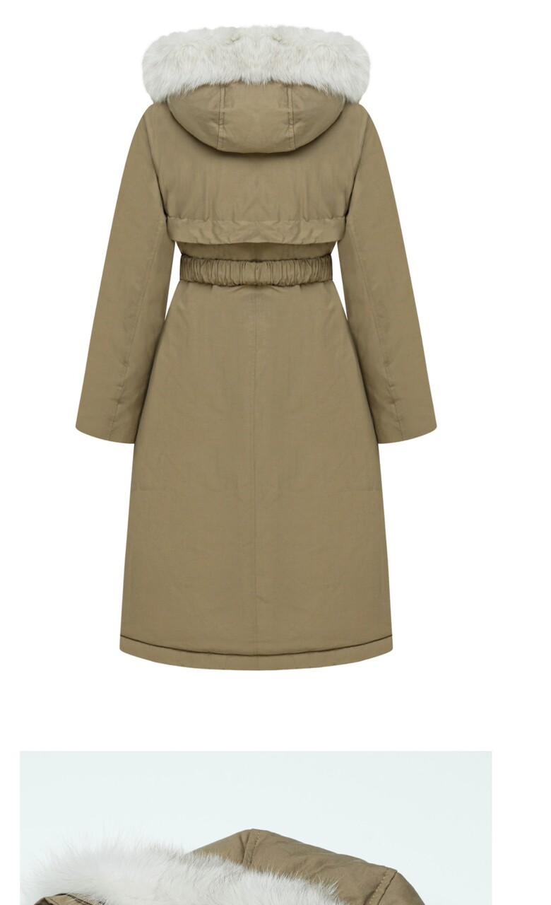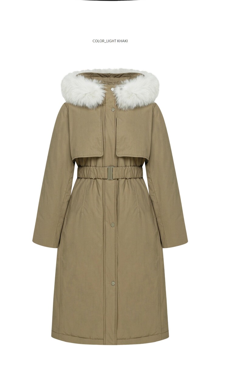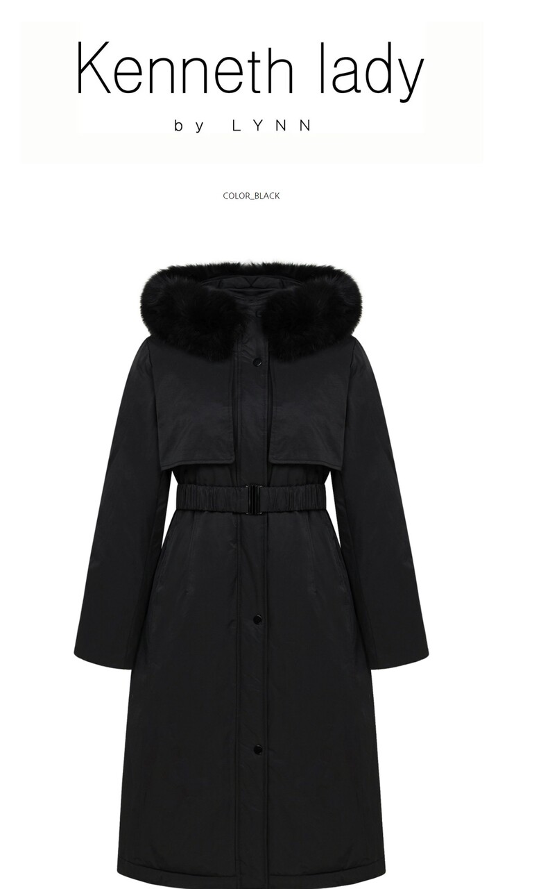 [케네스레이디] 후드 퍼 야상 벨티드 롱다운 EGDHOK9900