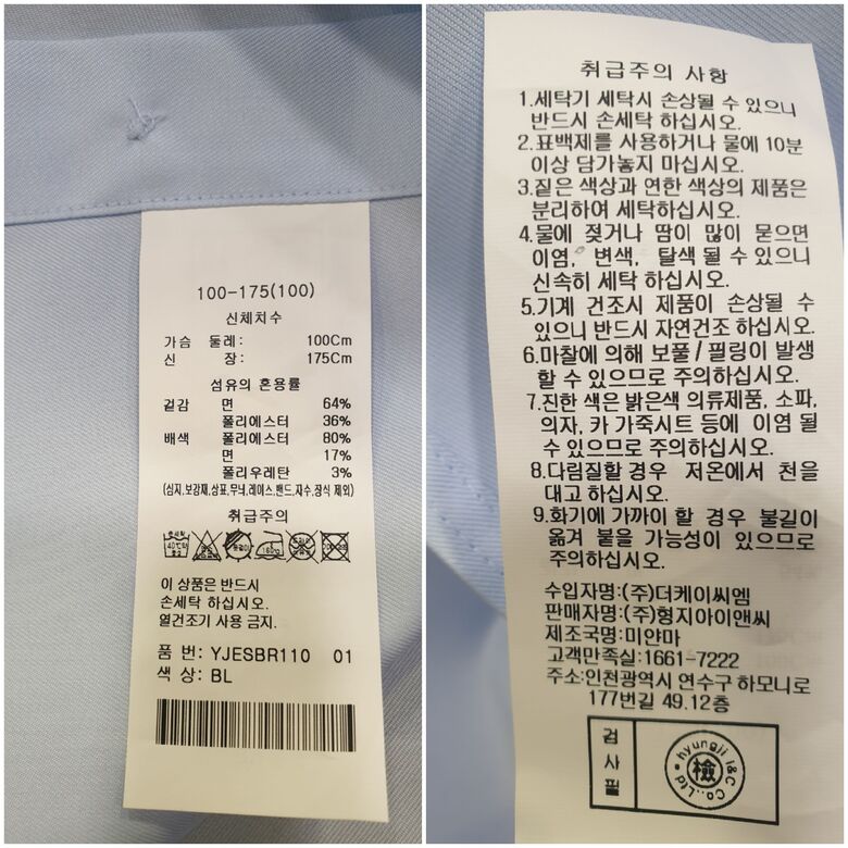 | 6. 세탁방법 및 취급시 주의사항 | 상품상세참조 |