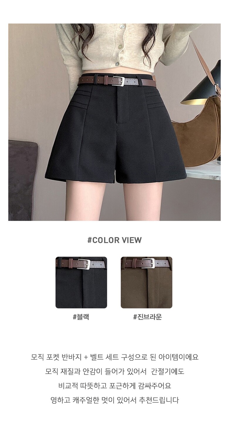 [~77까지][벨트+팬츠set]네코 모직 안감 포켓 반바지