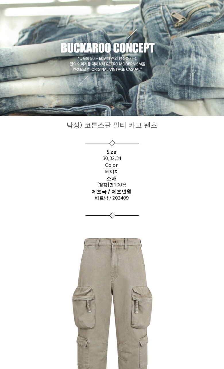 [버커루] 남성) 코튼스판 멀티 카고 팬츠 (B245PT240P)