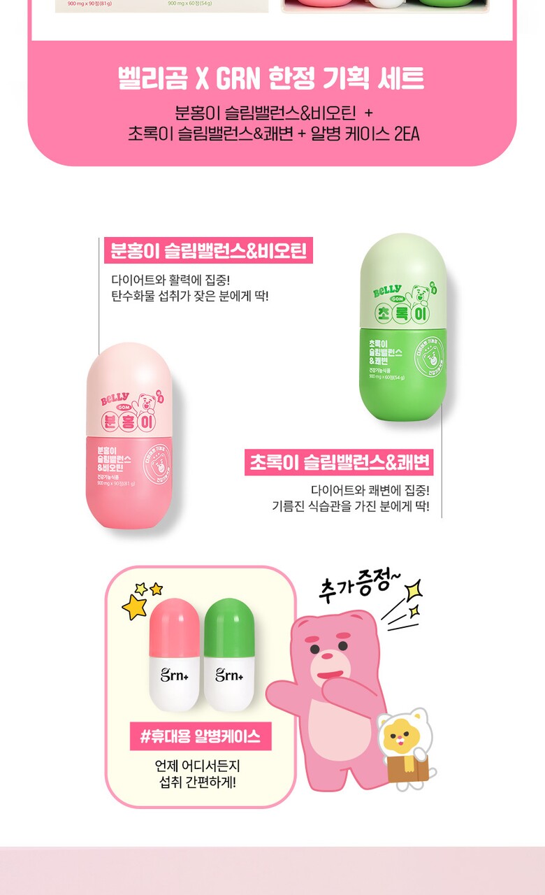 [GRN] 벨리곰x슬림밸런스 분홍이 초록이 SET