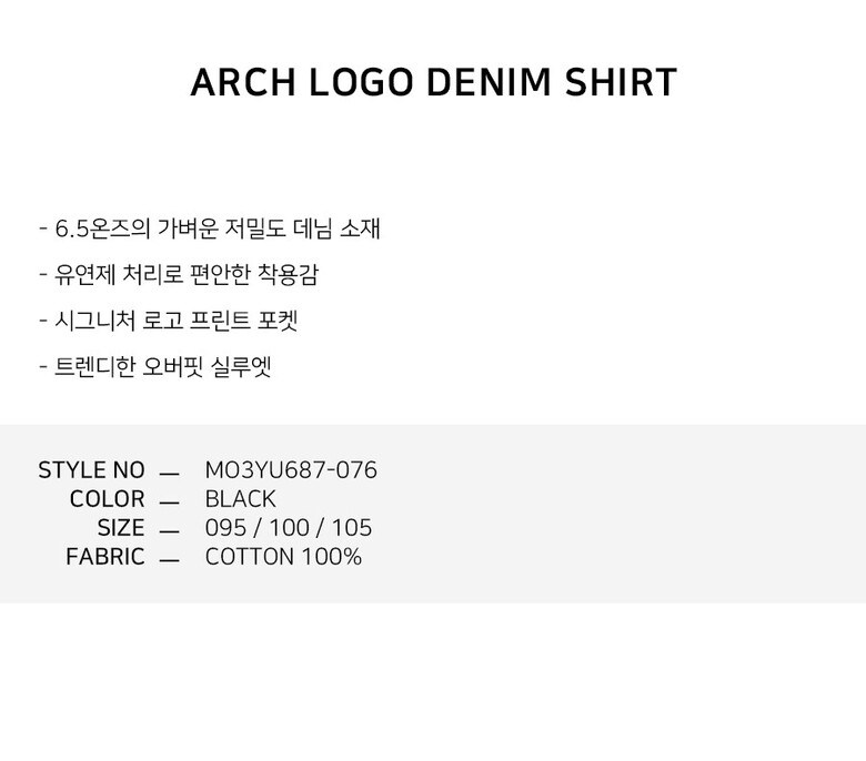 [레이피커스] 아치 로고 데님 셔츠 BLACK (MO3YU687-076)