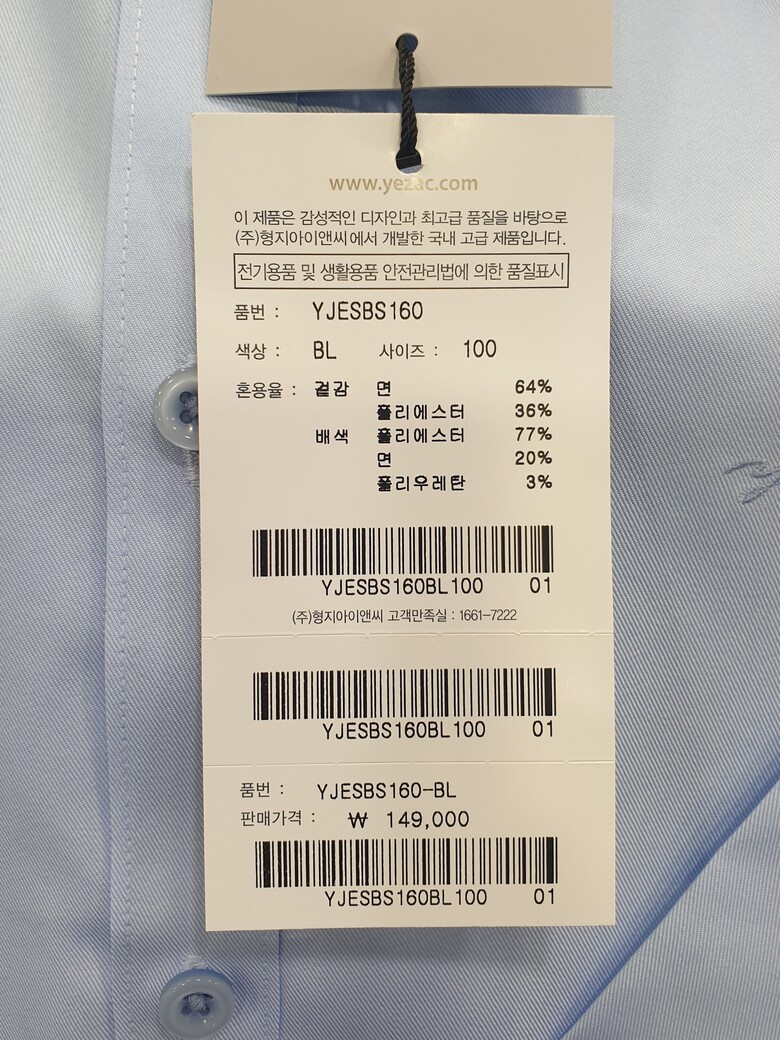 [예작셔츠] 면혼방 솔리드 슬림핏셔츠 YJESBS160BL