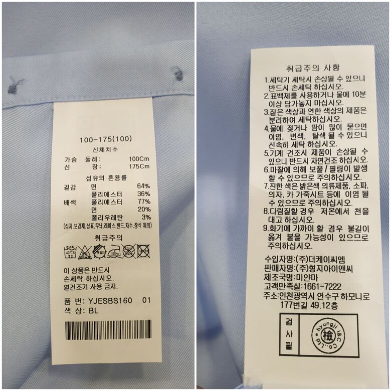 6. 세탁방법 및 취급시 주의사항 | 상품상세참조 |