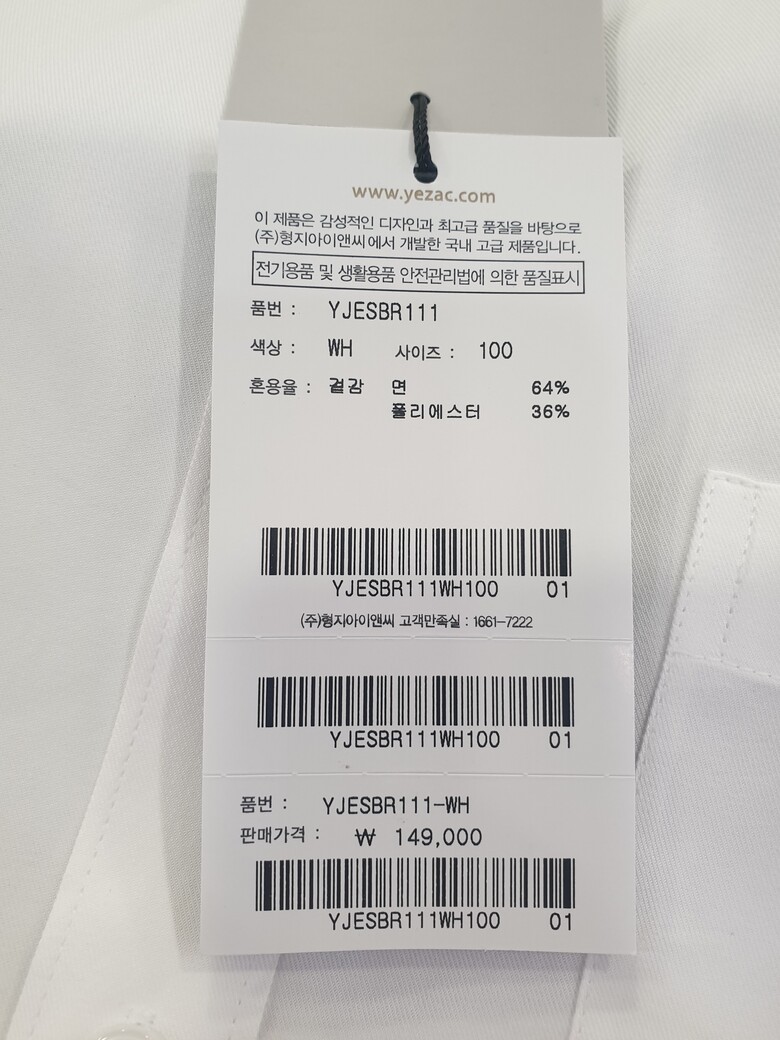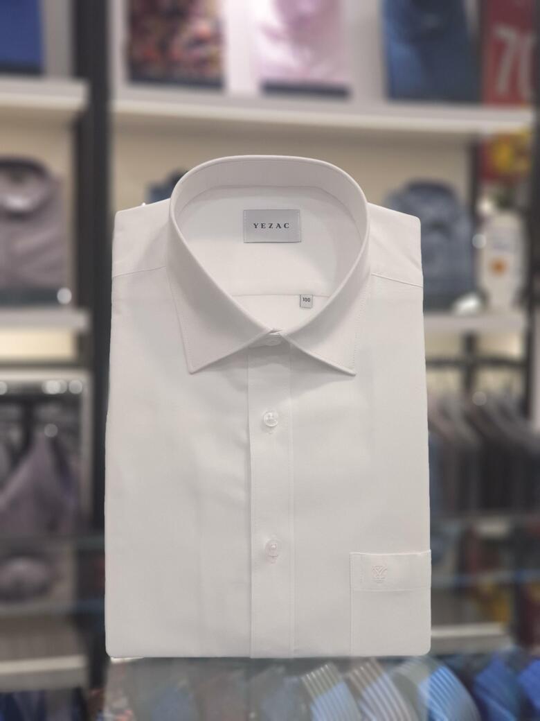 [예작셔츠] 화이트 면혼방 솔리드 일반핏셔츠 YJESBR111WH
