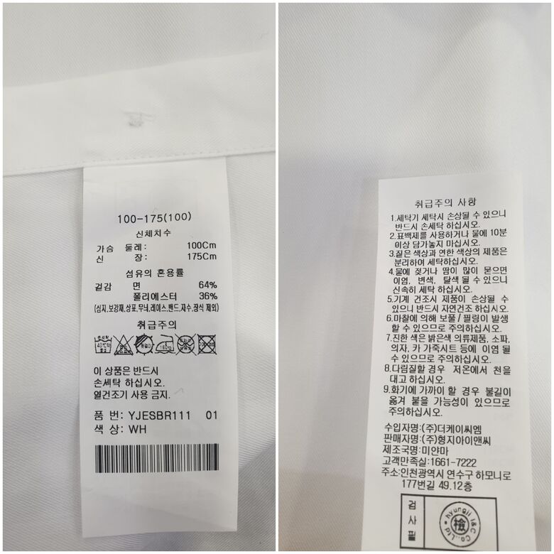 6. 세탁방법 및 취급시 주의사항 | 상품상세참조 |