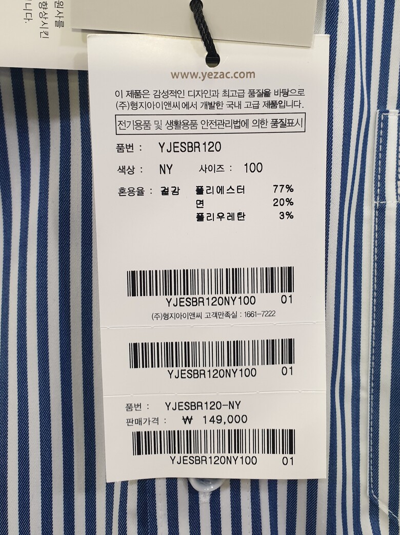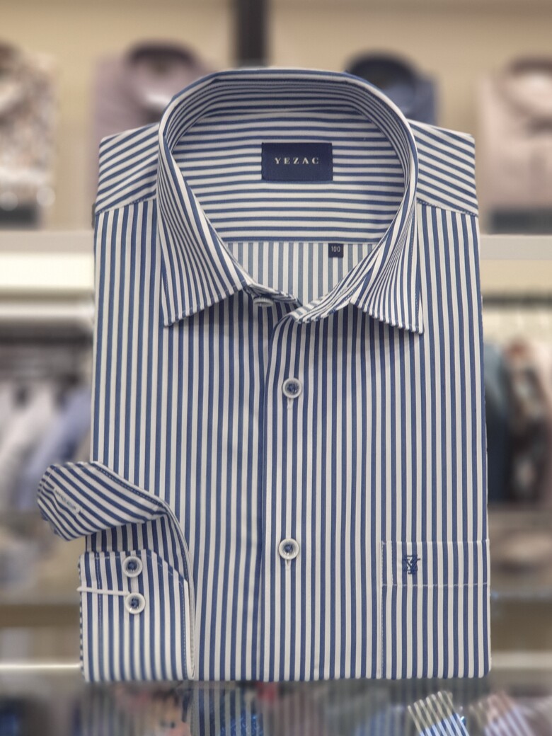 [예작셔츠] 스트라이프 면혼방 스판 링클프리 일반핏셔츠 YJESBR120NY