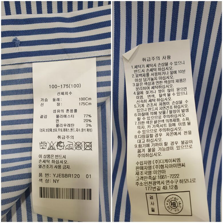 6. 세탁방법 및 취급시 주의사항 | 상품상세참조 |