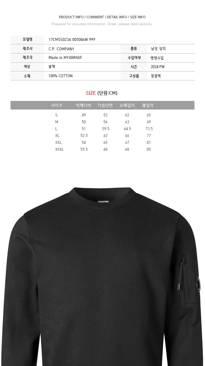 CP 24FW 렌즈 와펜 디아고날 크루넥 기모 맨투맨 블랙 17CMSS023A 005086W 999