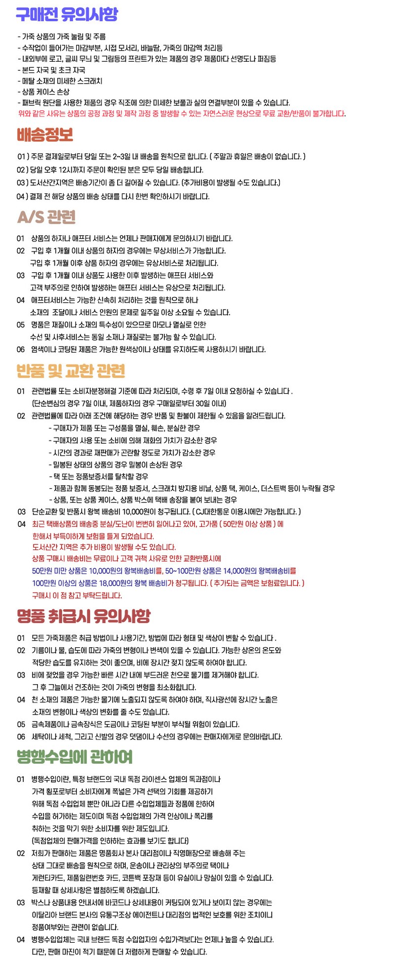 반품 유의사항