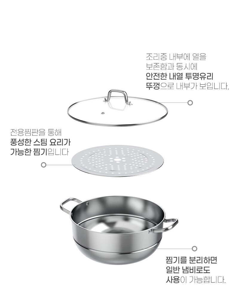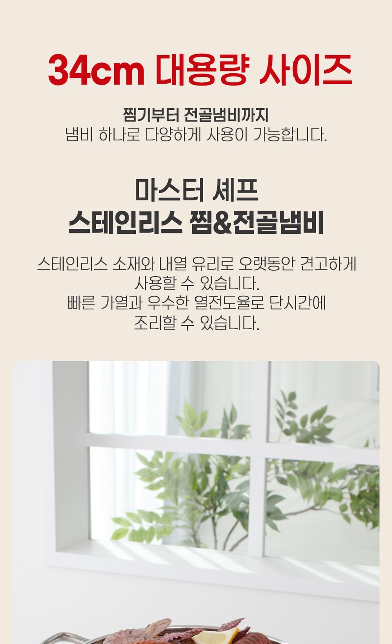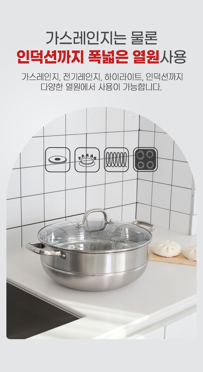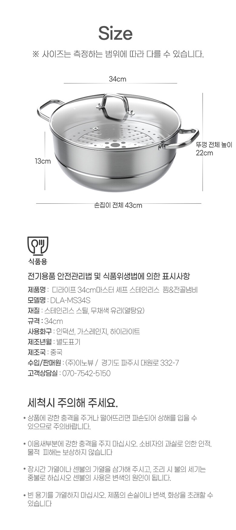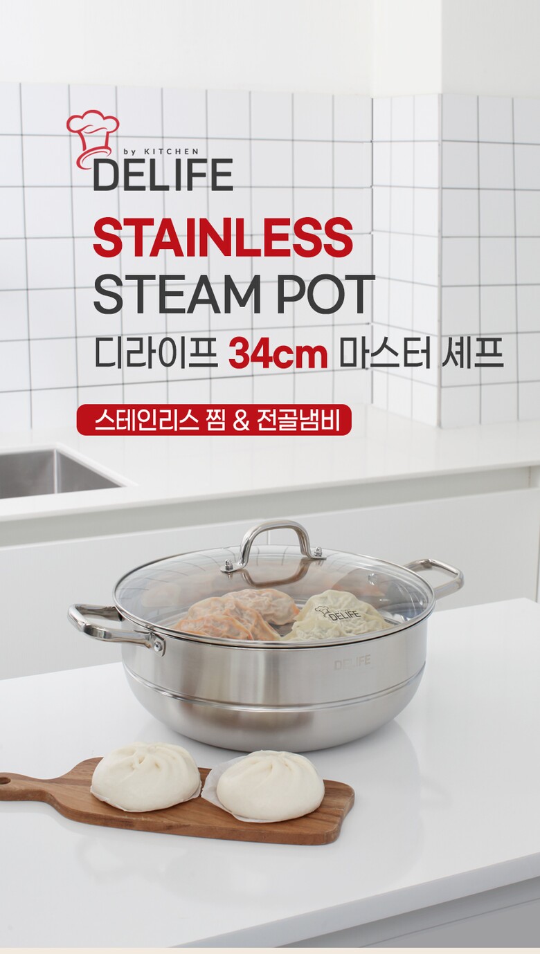 [디라이프] 34cm 마스터셰프 특대형 스테인레스 찜&전골냄비 DLA-MS34S