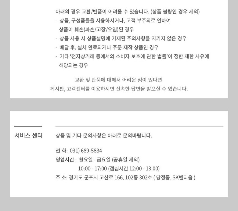 상품불량에 의한 반품, A/S, 품질보증 및 피해보상 등에 관한 사항은 소비자 분쟁해결기준(공정거래위원회 고시) 구매자가 미성년자인 경우에는 상품 구입시 법정대리인이 동의하지 아니하면 미성년자 본인 또는 법정대리인이 구매취소 할 수 있습니다. |