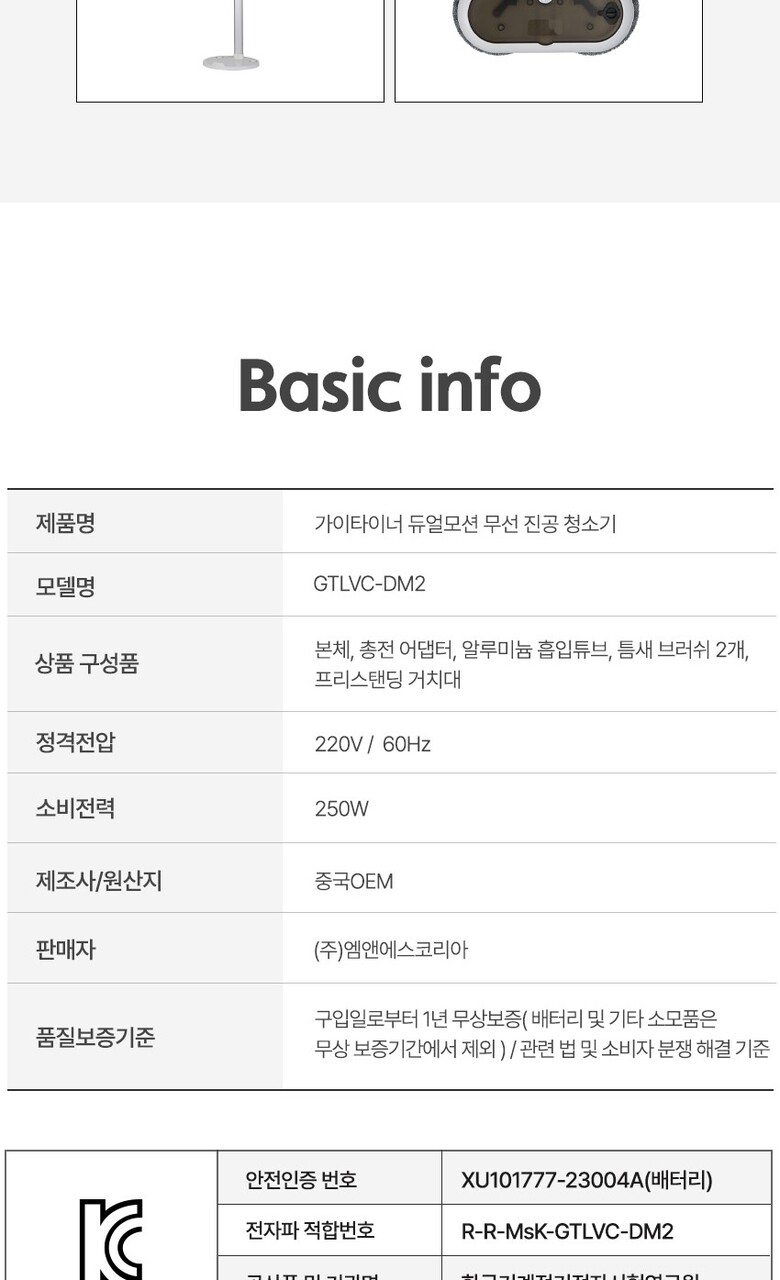 가이타이너 듀얼 모션2 무선진공청소기_충전식 스탠딩 거치대 포함 GTLVC-DM2