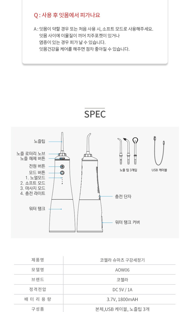 코첼라 슈마츠케어 구강세정기 AOW06