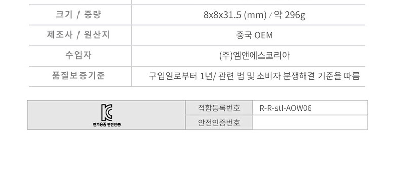 8. 제조사(수입자) | 상세페이지 참조 |
