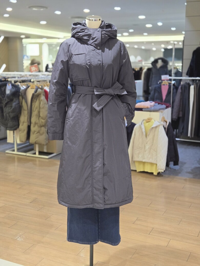 구스롱코트 허리 벨트끈으로연출되는 가볍고