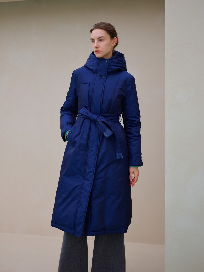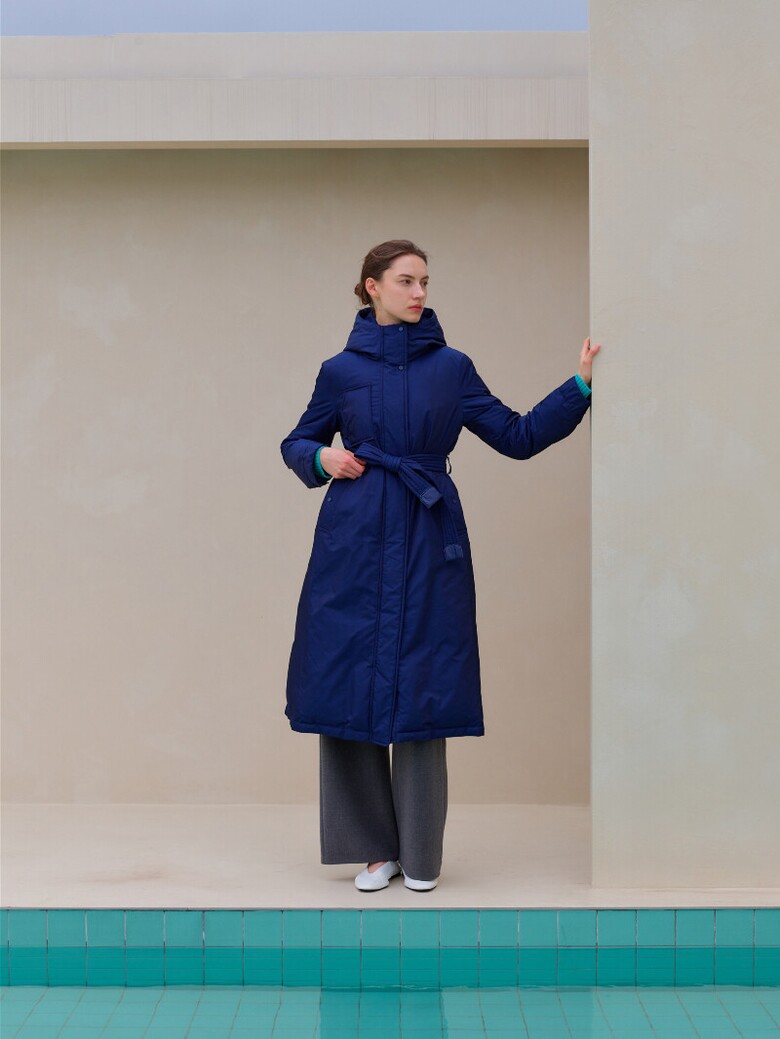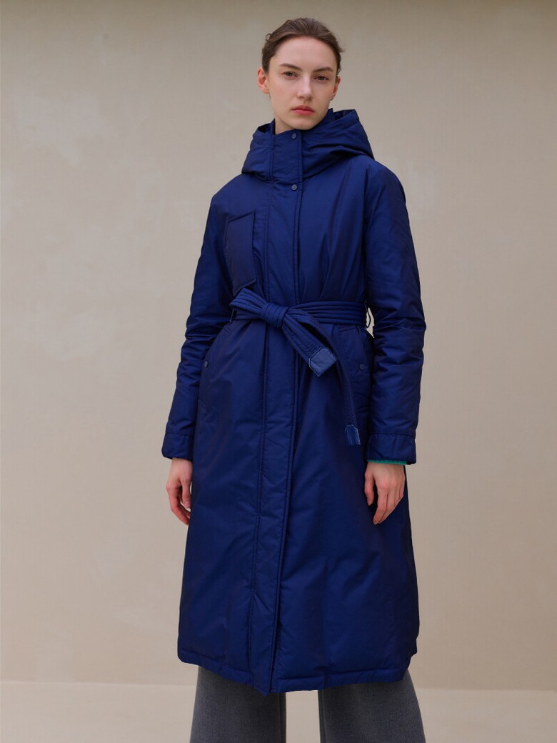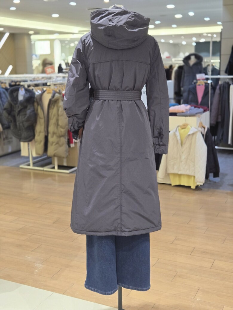 [발렌시아]하이넥 후드 벨트 구스 롱패딩 24AME18