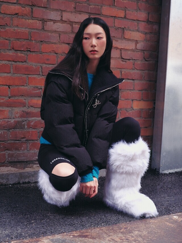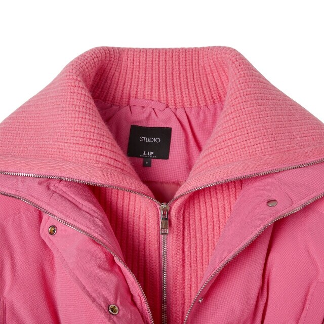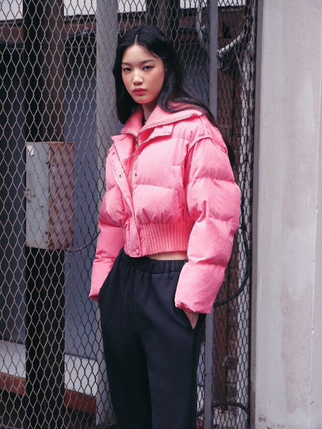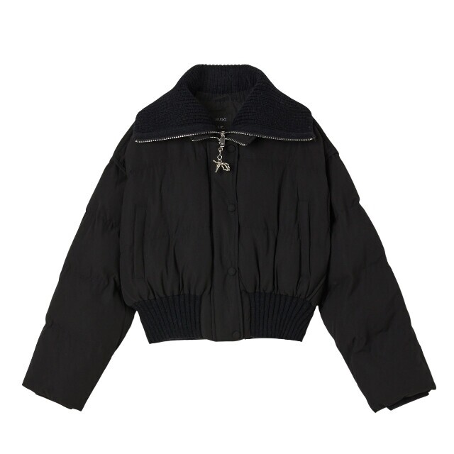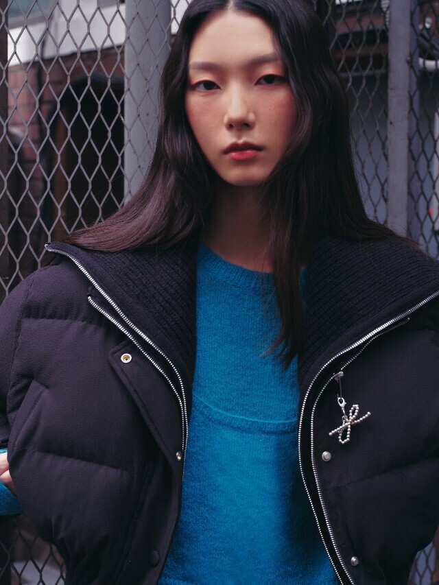 AQ4PDA65 웰론 빅카라 니트 배색 크롭 패딩
