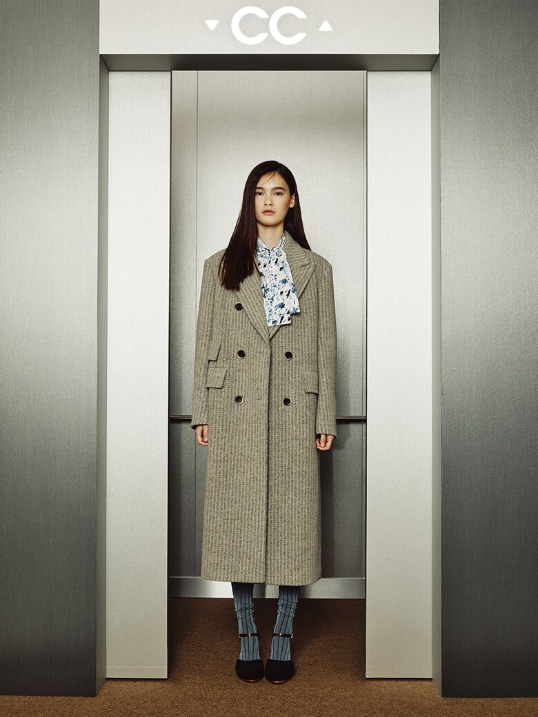 CC collect. 울 스트라이프 더블 롱코트_C234MSG023