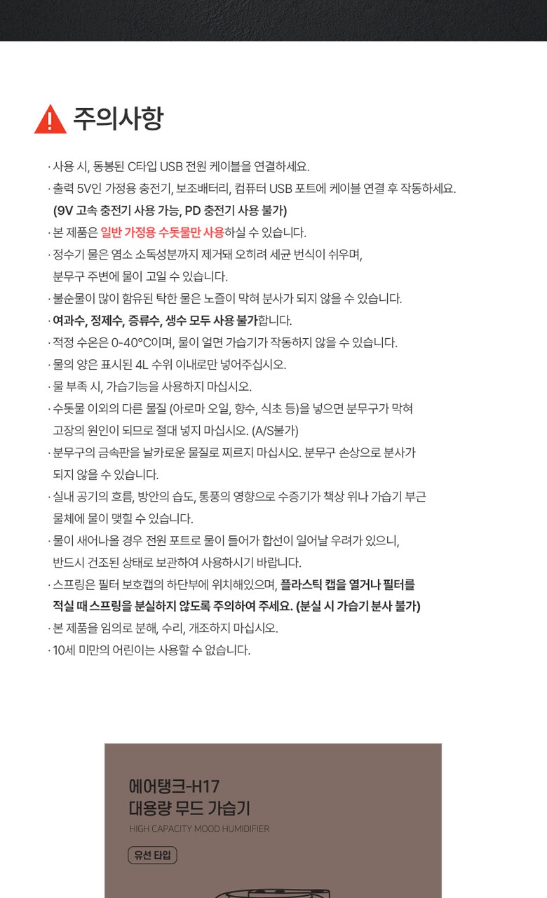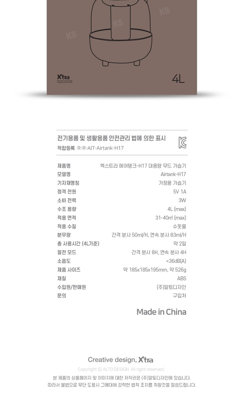 엑스트라 에어탱크-H17 대용량 무드 가습기 4L
