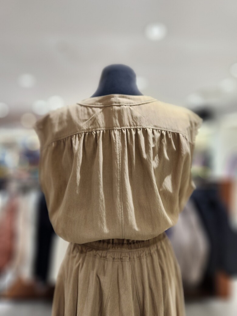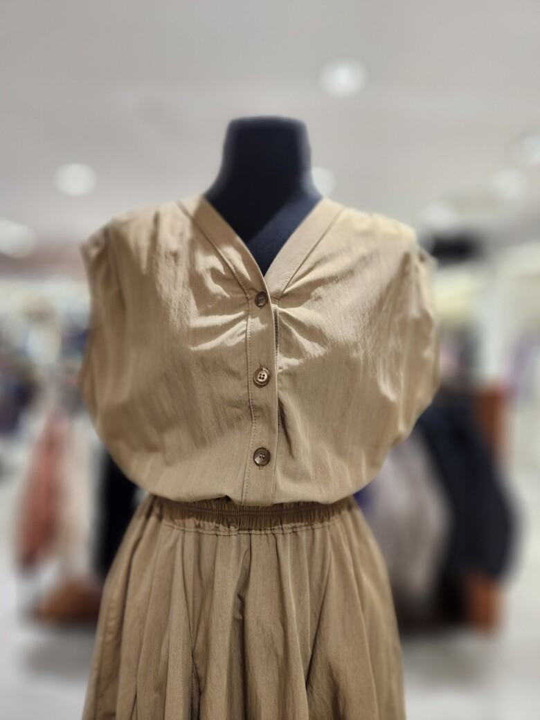 어깨선을 살짝 덮는 소매선으로 아우터를 걸치기도 좋습니다