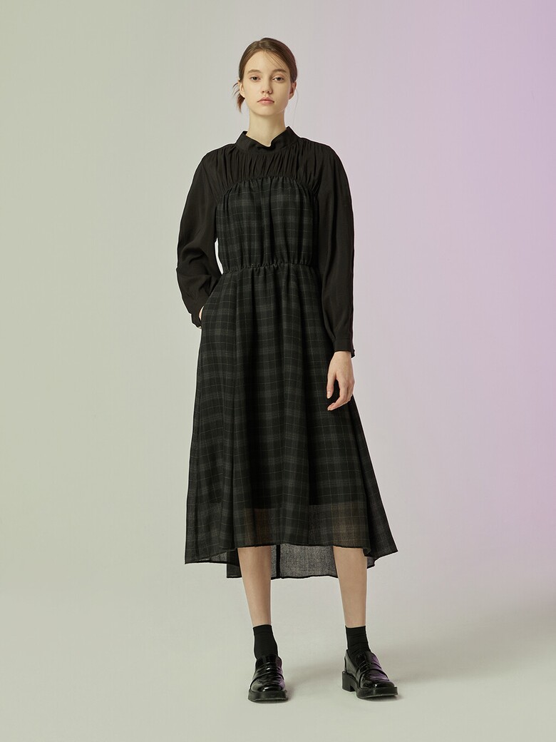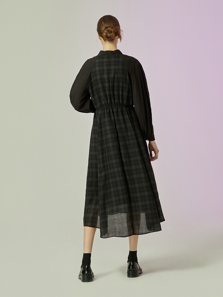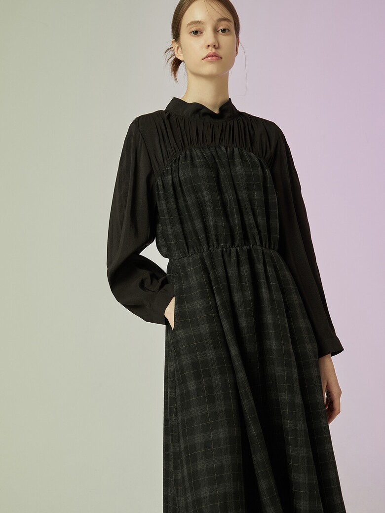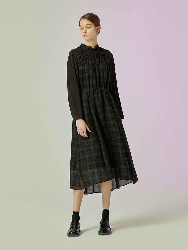 페미닌한 무드를 더해준 체크 패턴 원피스입니다.