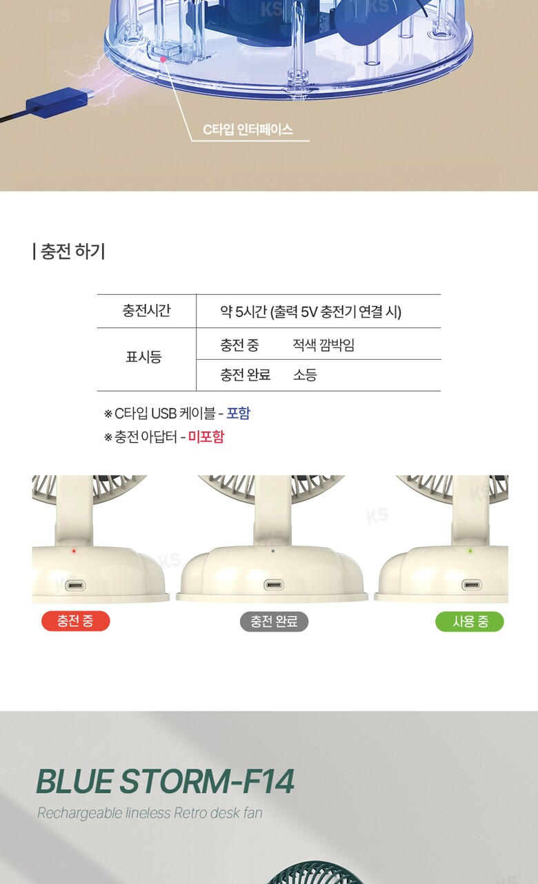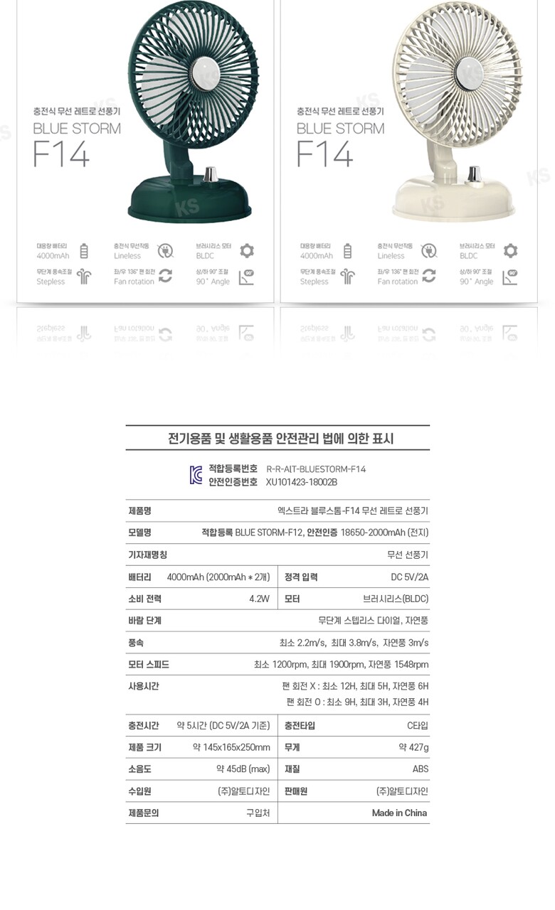 엑스트라 블루스톰-F14 레트로 무선데스크선풍기