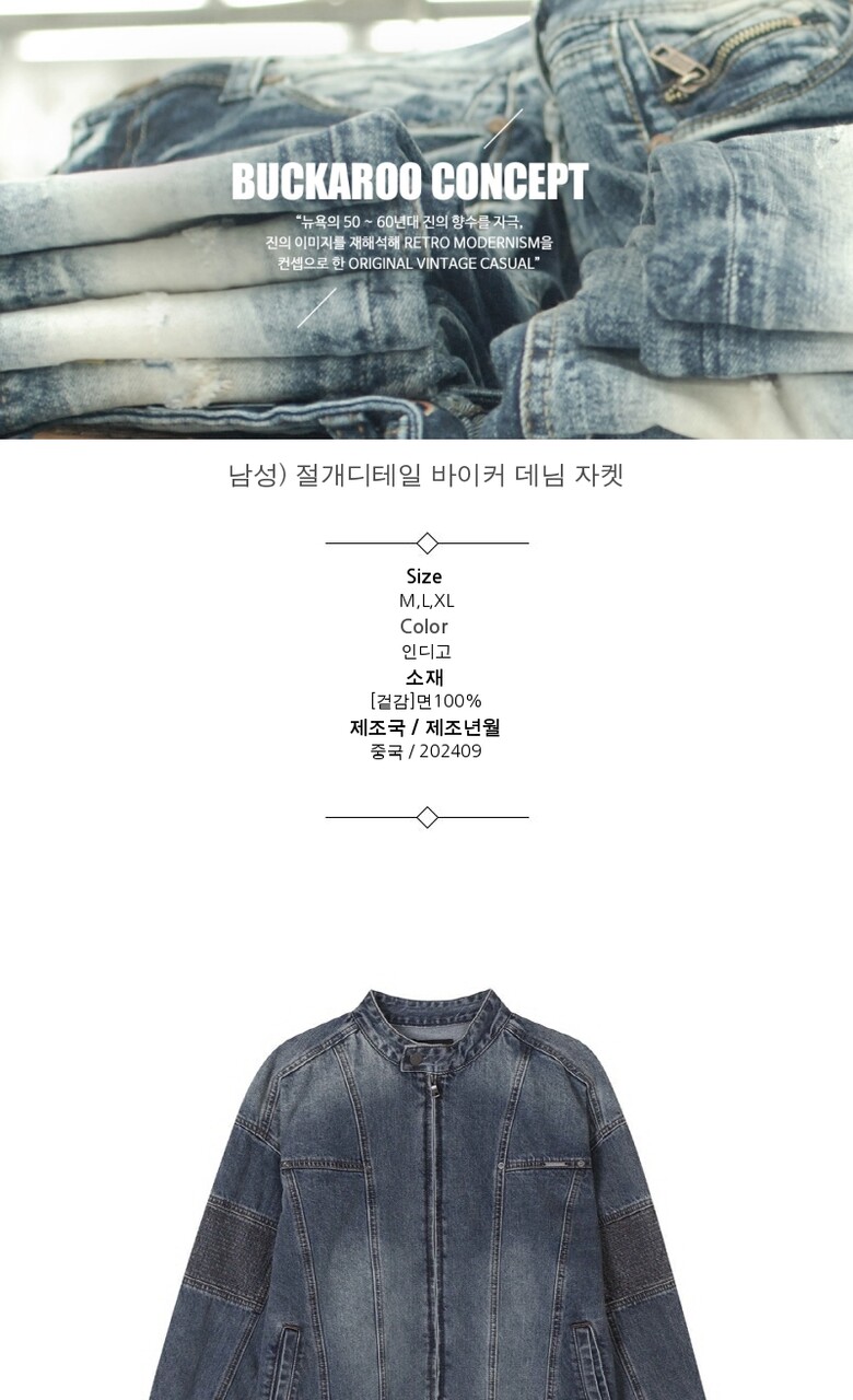 [버커루] 남성) 절개디테일 바이커 데님 자켓 (B255DJ320P)