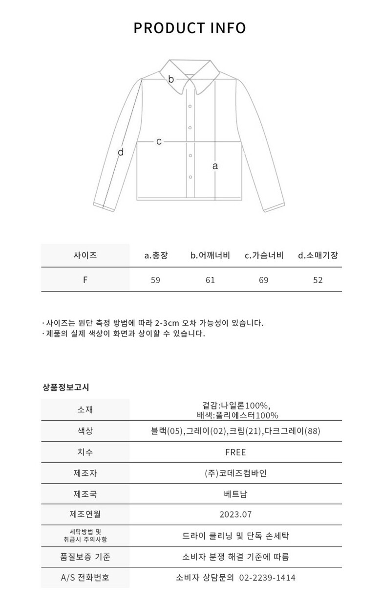 · 취급 시 주의사항 : 물세탁 금지, 기본 드라이