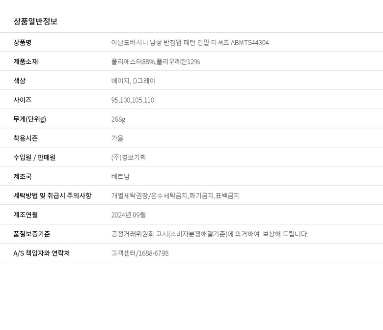 | 6. 세탁방법 및 취급시 주의사항 | 상세이미지 참조 |