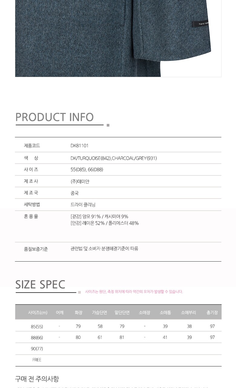 6. 세탁방법 및 취급시 주의사항 | 상세페이지참고 |