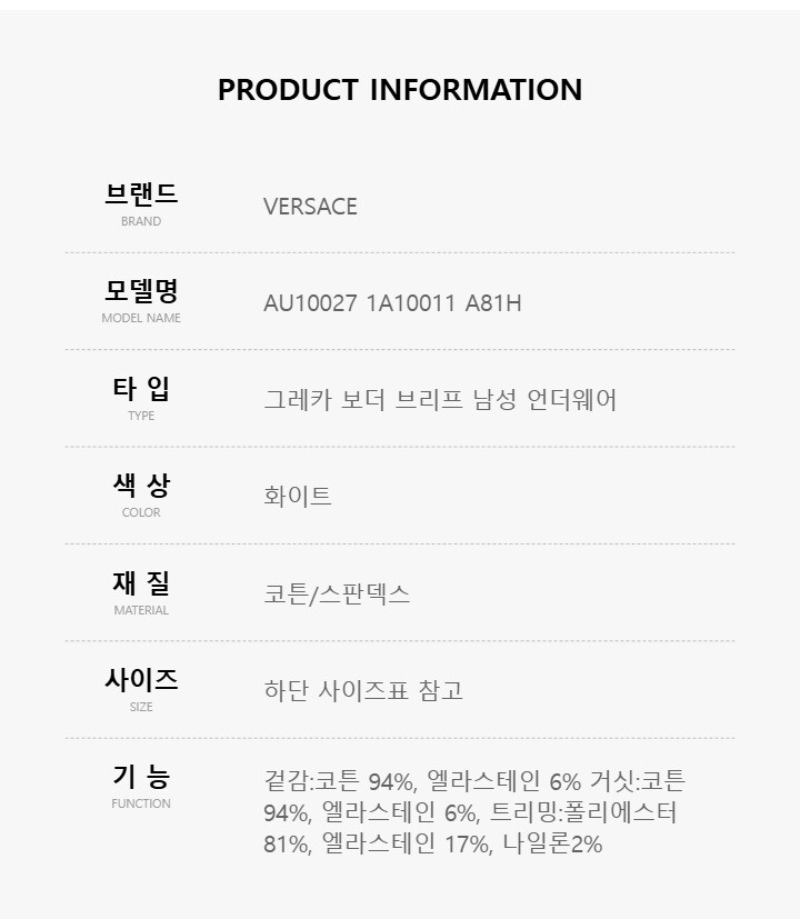베르사체 언더웨어 AU10027 1A10011 A81H 그레카 보더 브리프 남성언더웨어 당일발송