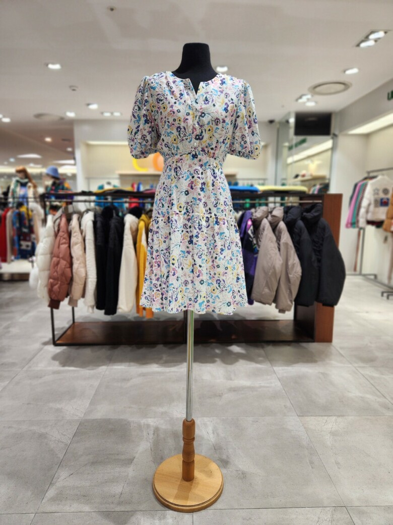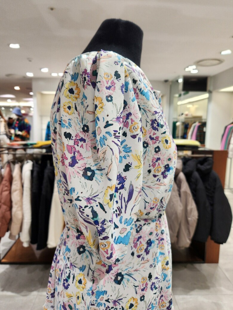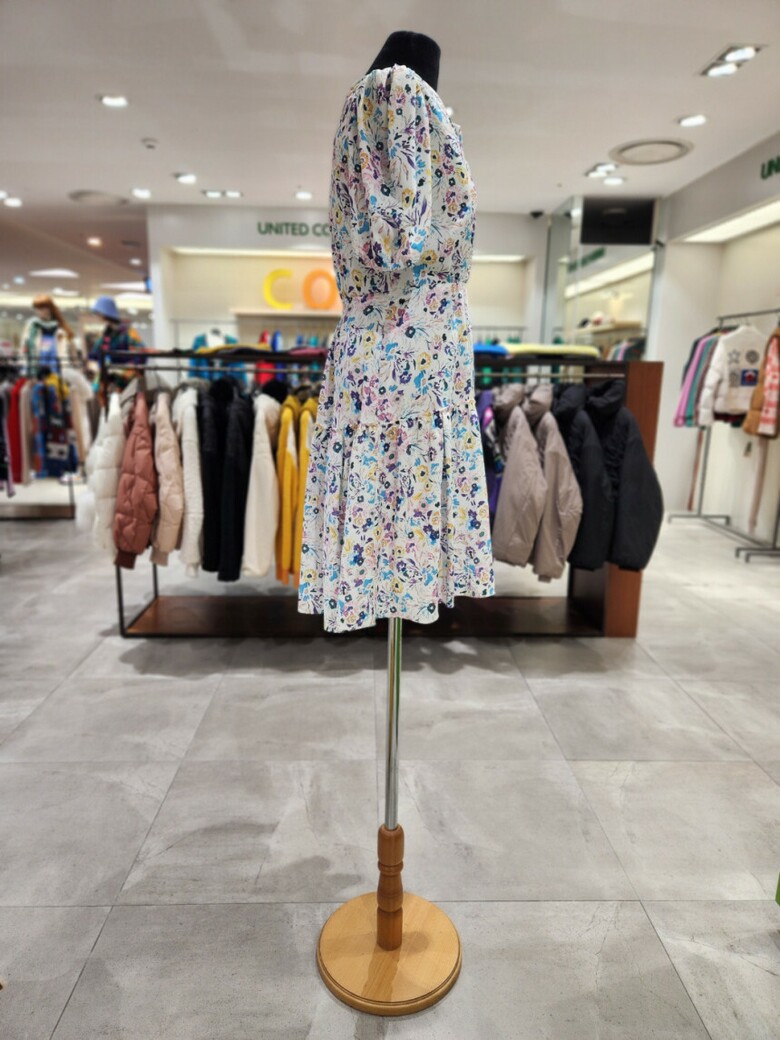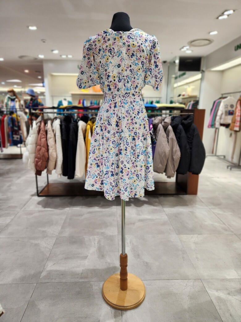 화사한 컬러의 프린트로 포인트를 준 미니 원피스입니다