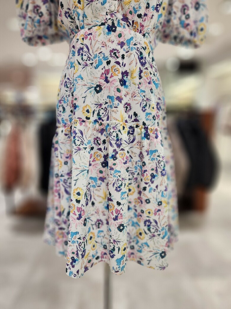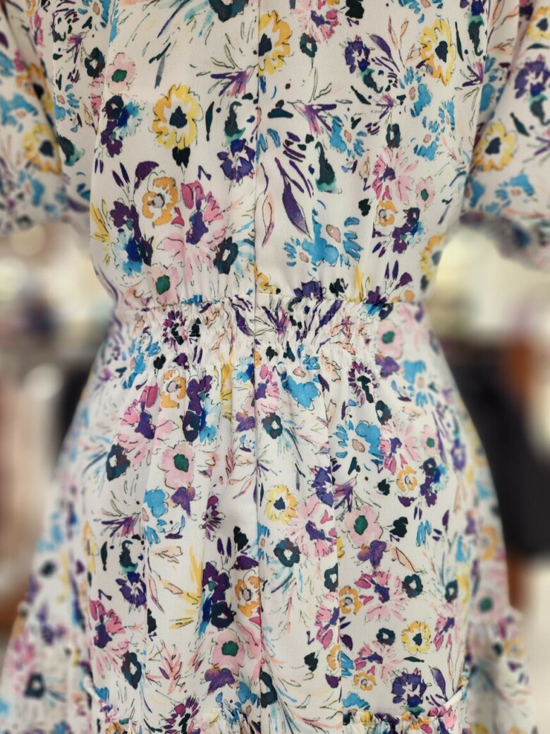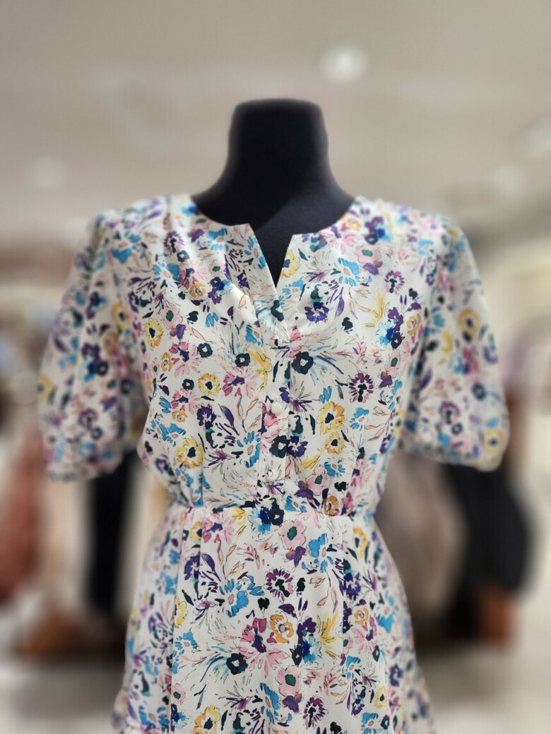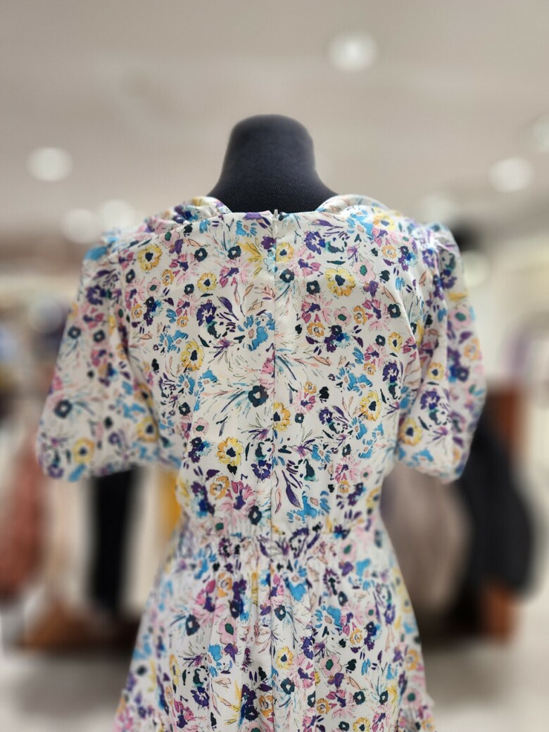 화사한 컬러의 프린트로 포인트를 준 미니 원피스입니다
